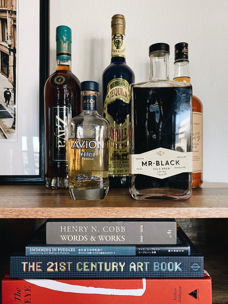 - Now, let’s add the liquor! Try to have a selection of what you like to drink, of course, but also have a nice variety of options for your guests. No one likes to go to a bar that only serves one type of liquor, right? Even if it is not consumed often, having a variety of liquors will make playing bartender a lot more fun. I always try to aim to have at least one vodka, one whiskey, one rum and one tequila for my guests (despite what the photo currently shows). May I recommend a bottle of Zaya Gran Reserva Rum or Corralejo Tequila?
