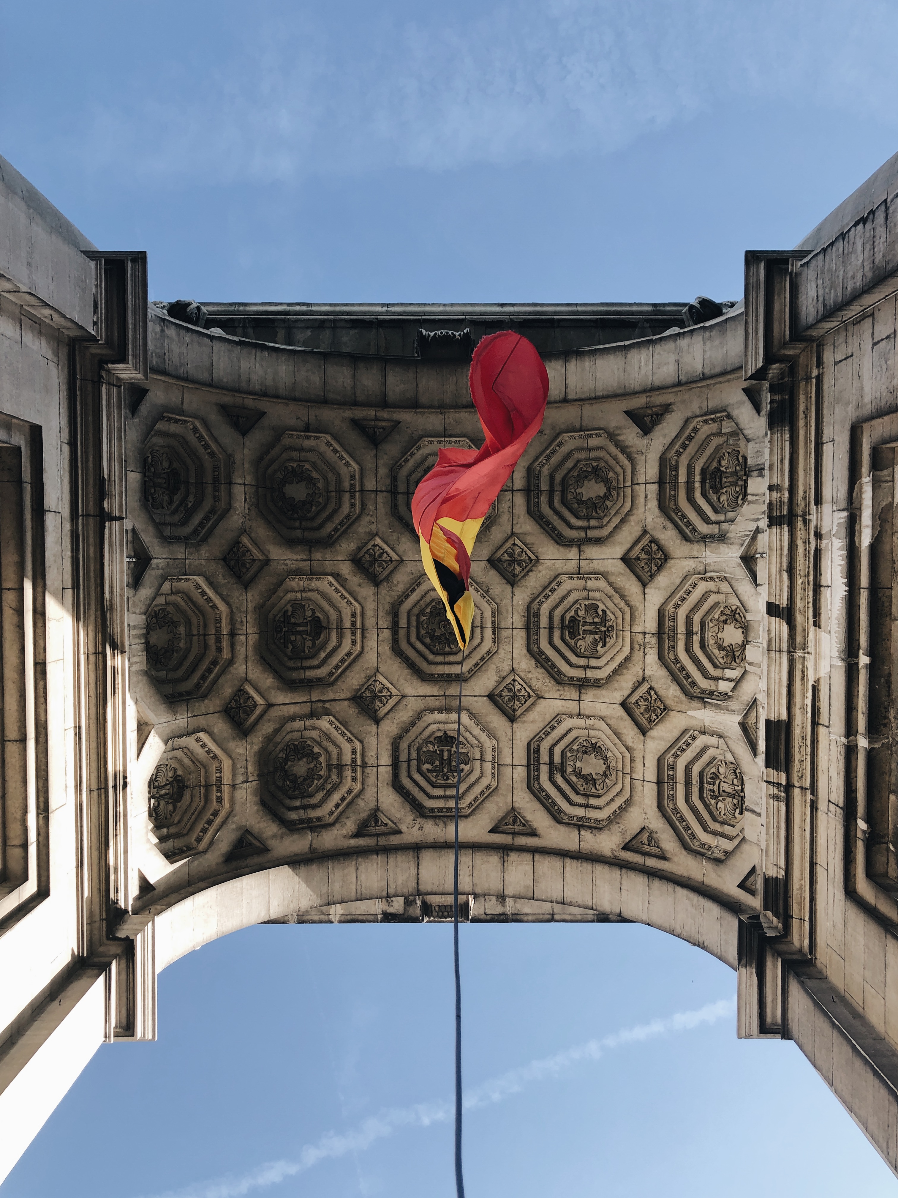 Parc du Cinquantenaire – The architecture, once again! The entire structure in its entirety is quite remarkable. Stand under the massive Belgium flag and hear it whip through the wind.