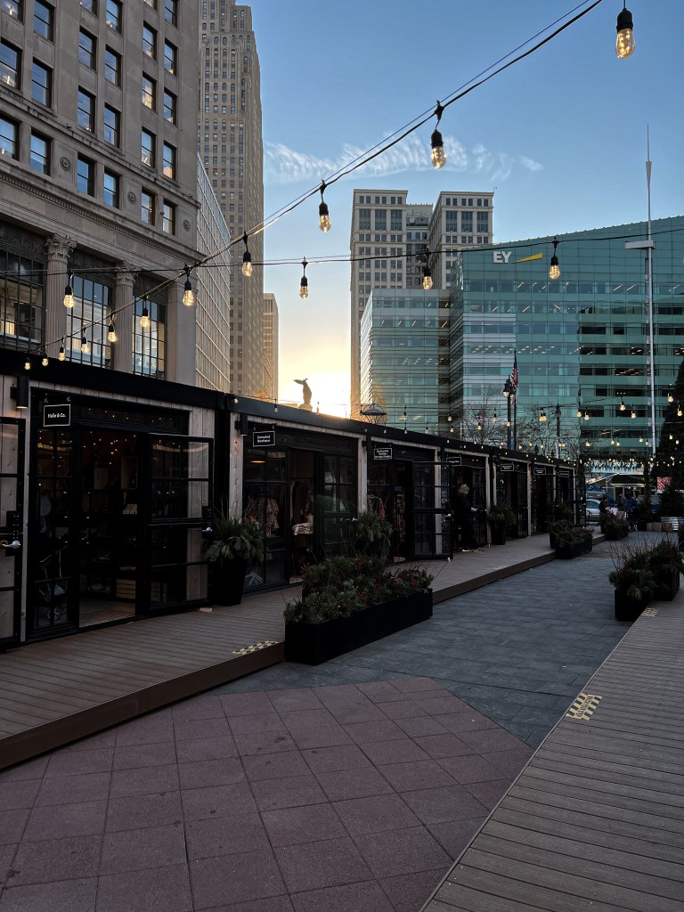 - Market at Cadillac Square Park – Right in the heart of downtown Detroit is Cadillac Square Park. Surrounded by skyscrapers and busy streets, this lot of green is home to a holiday pop-up where you can shop a litany of local shops offering jewelry, clothing, textiles and pet accessories. If you are looking for unique, handcrafted jewelry check out Halie and Co. If cooking is more your vibe, stop by Cookette. I don’t even cook all that much, yet I walked out with bags full of mini jars of jam, crackers, a cookbook and some cheese paper. Who needs cheese paper? Clearly, I do.