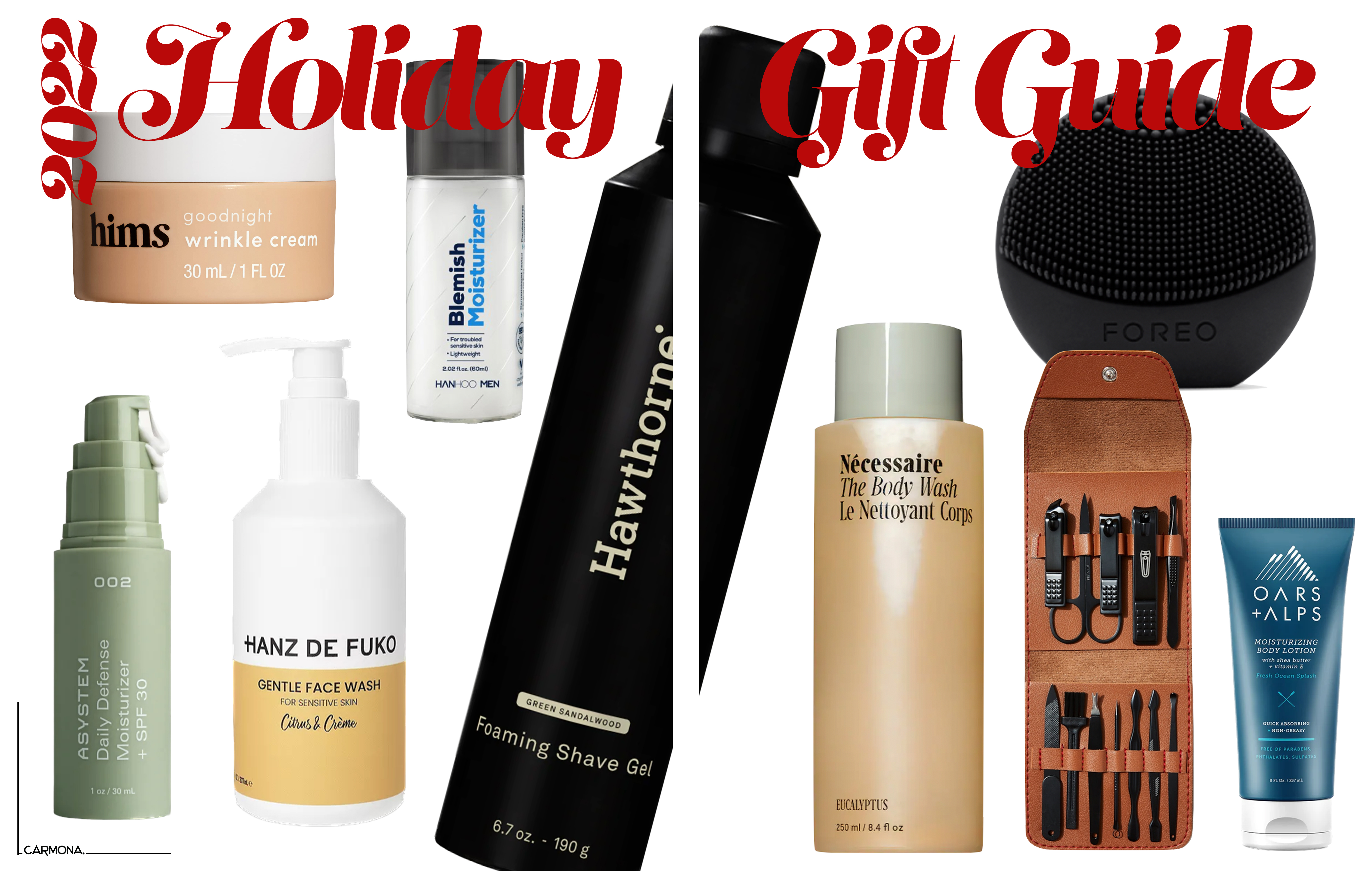 hims Goodnight Wrinkle Cream $24 | HANHOO Men’s Blemish Moisturizer $12 | Hawthorne Foaming Shave Gel $15 | Hanz De Fuko Gentle Face Wash $28 | ASYSTEM Daily Defense Moisturizer + SPF $24 | Foreo LUNA™ Play $42.90 | Nécessaire The Body Wash $25 | Bespoke Post Medium Luxury Grooming Tool Kit $60 | Oars + Alps Moisturizing Body Lotion $12