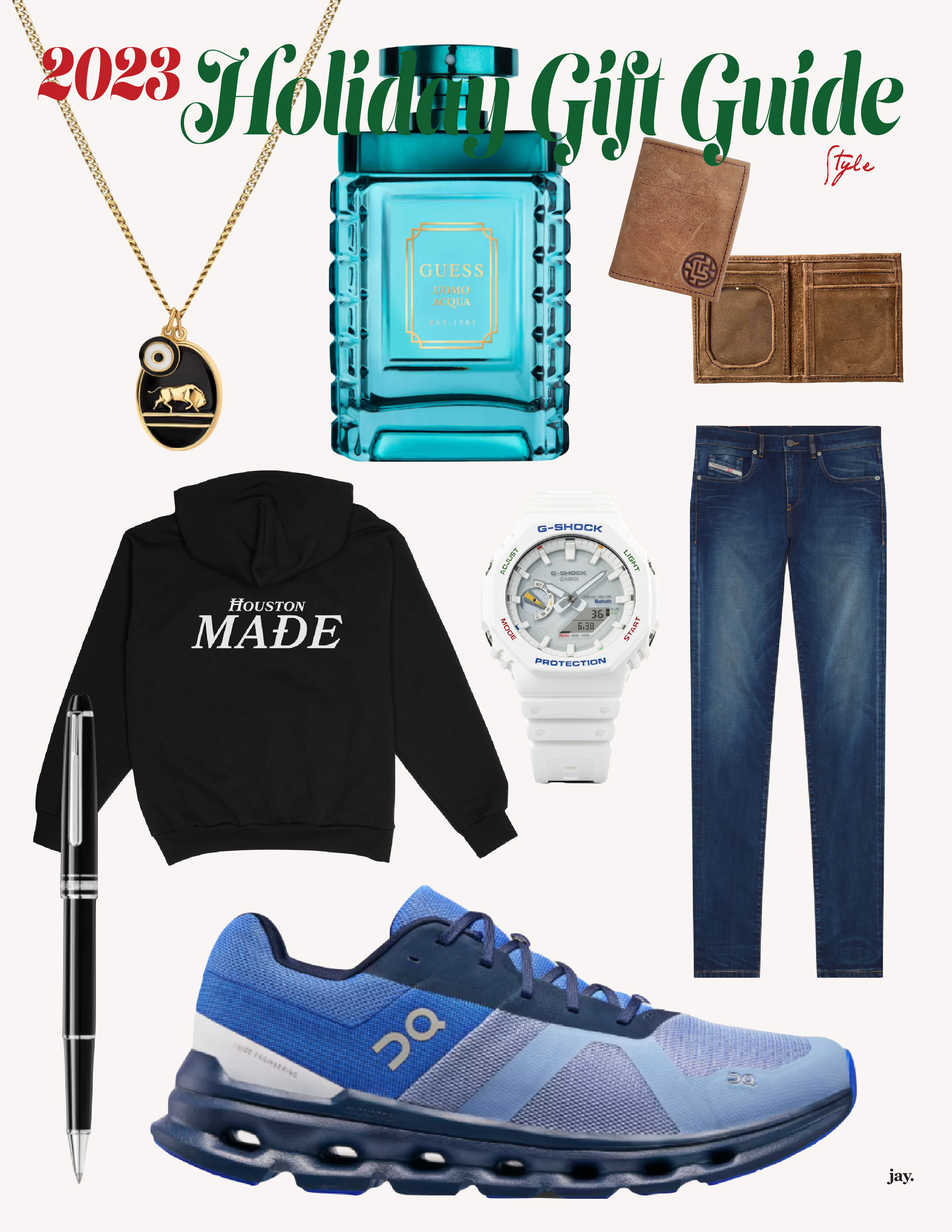Miansai Oxen Necklace in Gold Vermeil and Black $185 | GUESS Uomo Acqua Eau de Toilette 3.4 oz $72 | Lazarus Artisan Goods Front Pocket Wallet $58 | Do Different Houston Made hoodie in Black $85 | G SHOCK 2100 Series $160 | Diesel Slim 2060 D-Strukt Joggjeans® $375 | Montblanc Meisterstück Platinum-coated Rollerball $540 | On Running Cloudrunner $149.99