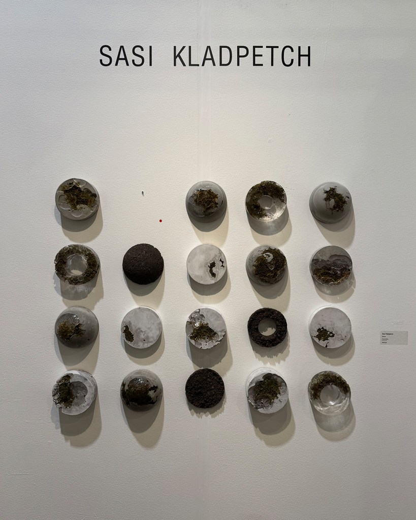 The first thing that caught my eyes about her artwork was the simplicity of how it was displayed. Yet there was a complexity in how it was created. That juxtaposition was what made me approach her booth. Kladpetch is a Bangkok born and raised, multimedia artist based in San Francisco. She uses a combination of human-made materials and natural materials such as clay, soil, plaster, concrete and plants to create her pieces. What I appreciated most about her work was the texture that the materials and her method gave each piece. I love when you can almost feel a piece of art by just observing it because of all of the texture it contains.