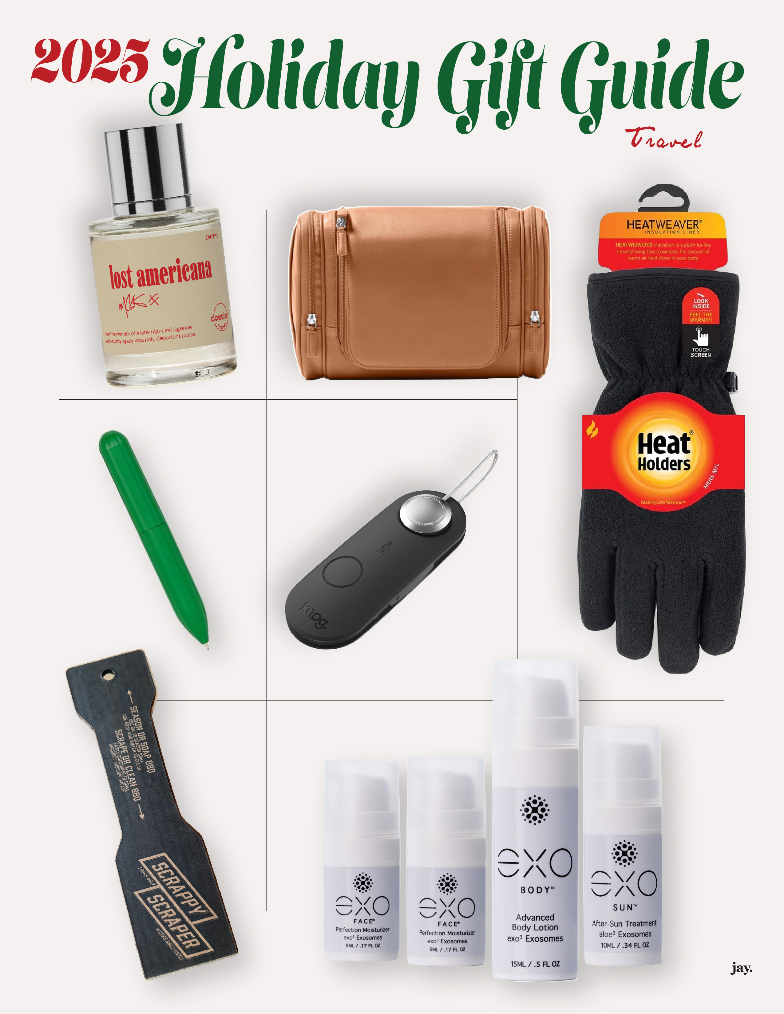 Dossier Lost Americana $49 | Leatherology Hanging Toiletry Kit $210 | Heat Holders Waterton Classic Fleece Touch Screen Gloves $34.99 | Benja Design Cactus Pen $34 | Knog Scout Travel Smart Luggage Tag, Finder & Alarm $65.99 | Scrappy Scraper Disposable BBQ Brush Scraper (pack of 3) $9.99 | EXO Face® Travel Kit $60.95