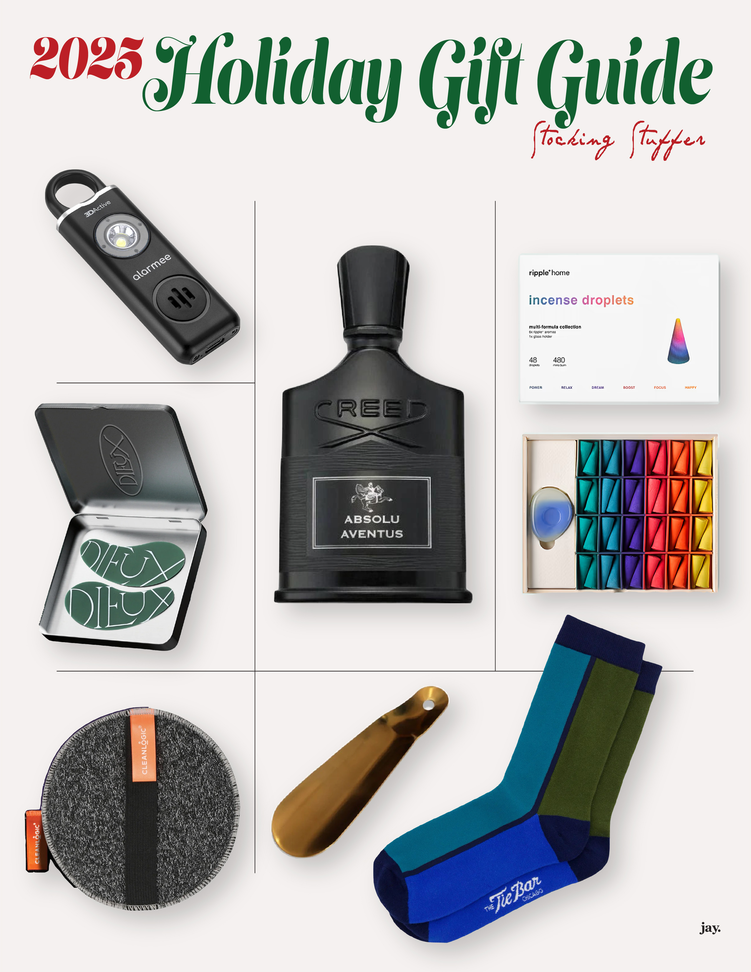 3D Active Alarmee Self Defense Keychain $29.99 | Creed Absolu Aventus 75ml $545 | ripple home Incense Multipack $35 | Dieux Forever Eye Mask $25 | Cleanlogic Detoxify Dual-Texture Body Exfoliator $22.99 | The Tie Bar Retro Block Deep Teal Dress Socks ($12) and Shoe Horn $24